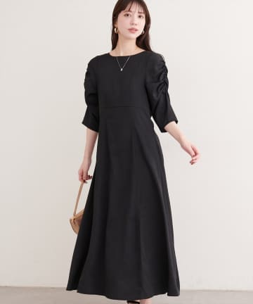 袖口シャーリングベロアワンピ