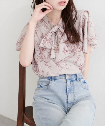 リボンタイフラワーブラウス