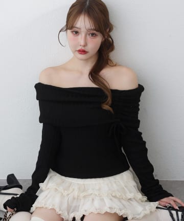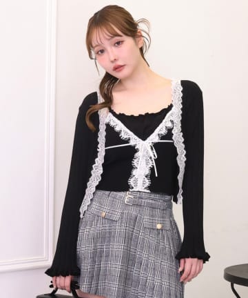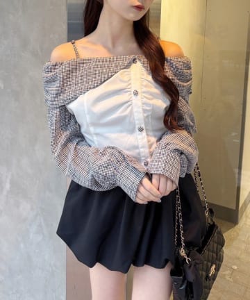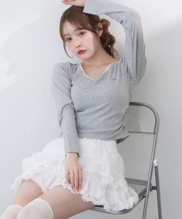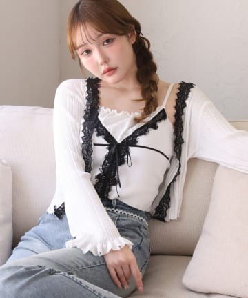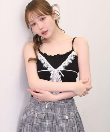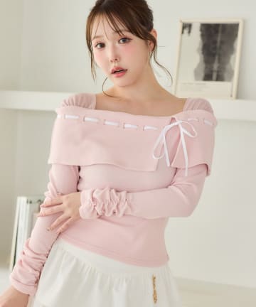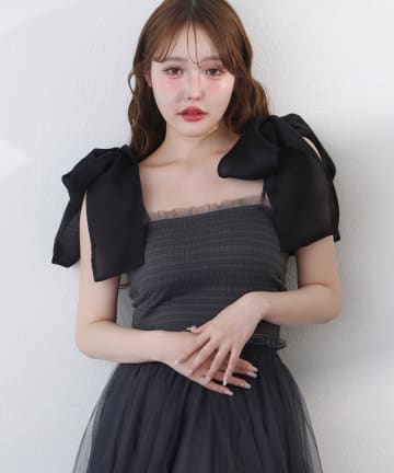 肩リボン取り外し可能カップ付きシャーリングインナー