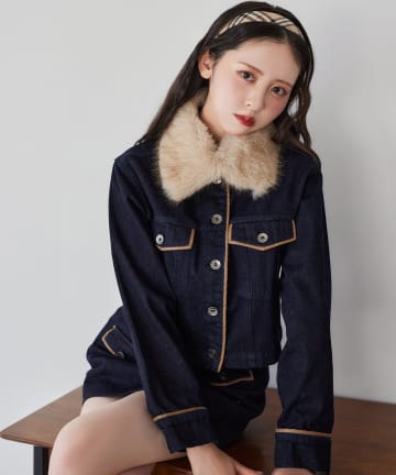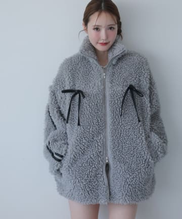 【リバイバル】リボンボアブルゾン/リボン取り外し可能
