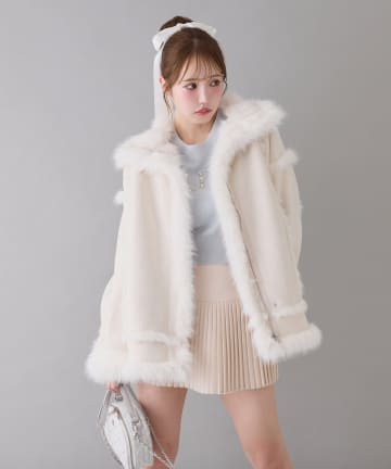 【人気カラー再予約】フードフェイクファービジューミドルコート