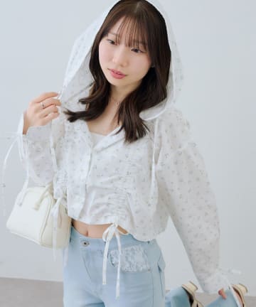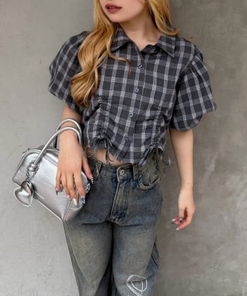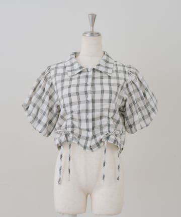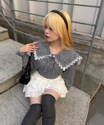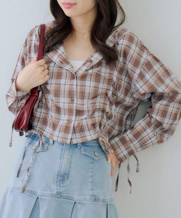 【RMAF】丈違いチェックフードレース付ブラウス