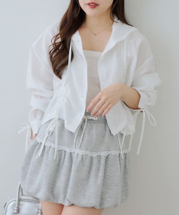 【continuer】胸ギャザーリボンタイブラウス