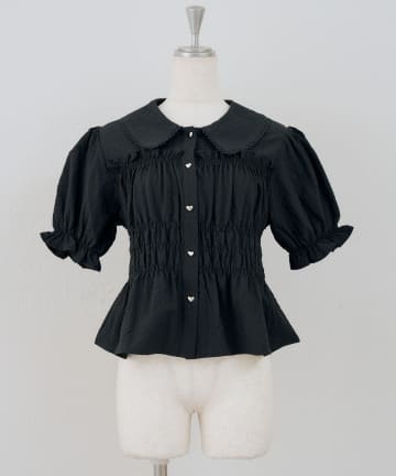 【continuer】シャーリングペプラム半袖ブラウス