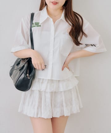 【continuer】【OUTLET限定】刺繍入りショート丈ブラウス
