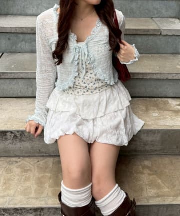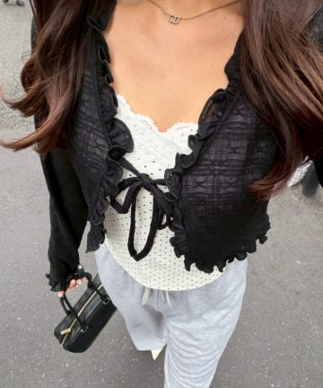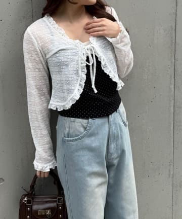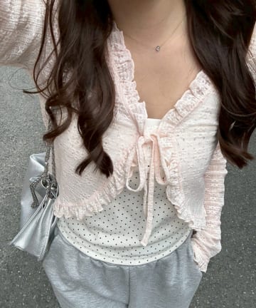 【continuer】【繊細なレースとフリルが主役級】ラッフルフリフリカーデ