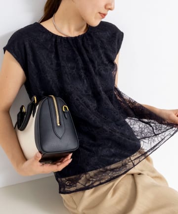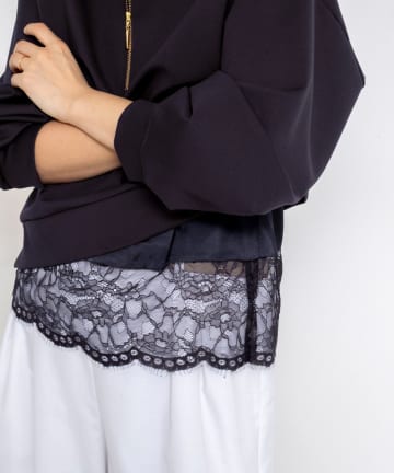 ウォッシャブルストレッチレースペプラムプルオーバー