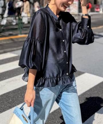 ウォッシャブルシアーラッフル羽織りブラウス