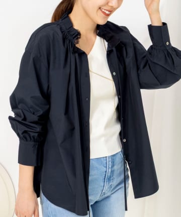 ウォッシャブル襟フリルプルオーバーブラウス