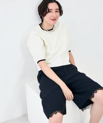 《手洗い可能》袖口レース取り外し可総針スクエアネックプルオーバー