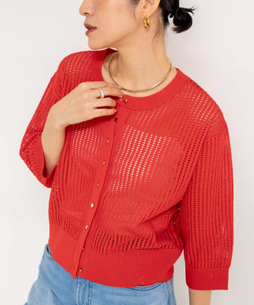 《手洗い可能》メッシュスパンコール6分袖カーディガン