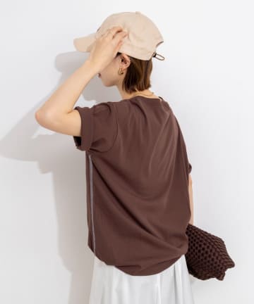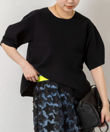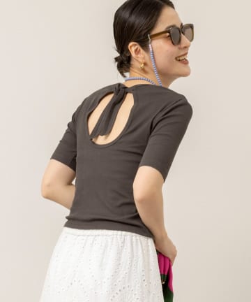 【MAQWEL/マクウェル】ウォッシャブルバックリボン五分袖プルオーバー
