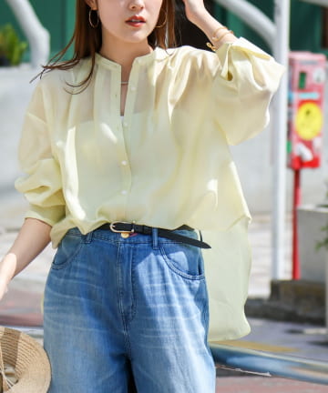【MAQWEL/マクウェル】ウォッシャブルオープンカラーシアーブラウス