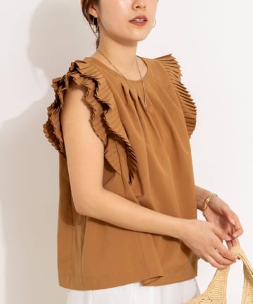《セットアップ対応》ウォッシャブルフレアスリーブレースブラウス