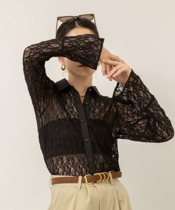 【MAQWEL/マクウェル】ウォッシャブルストレッチレースシャツ