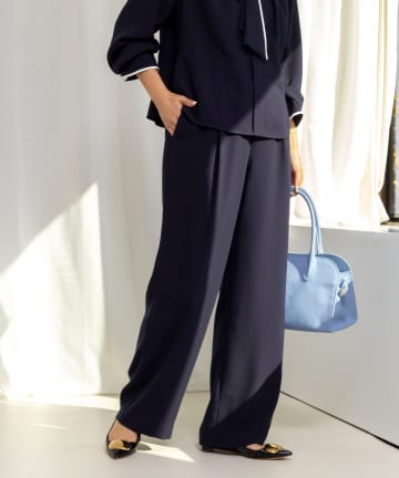 《セットアップ対応》ウォッシャブルジョーゼットタックパンツ