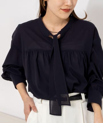 チュール襟付オーガンジーフレアシャツブラウス