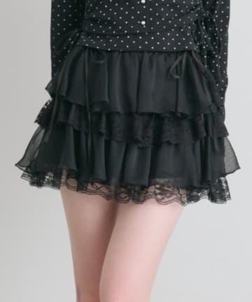 レースアップ4段フリルスカート