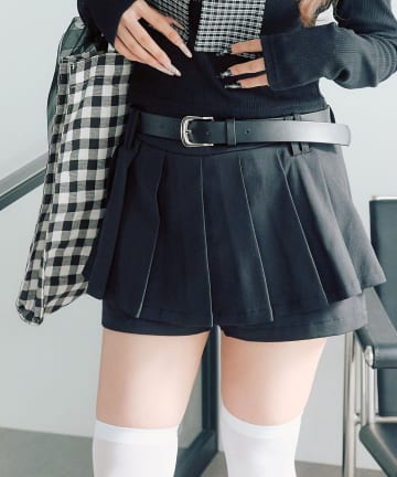 ベルト付きプリーツスカパン