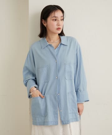 【春夏の羽織りものに◎】シアーデニムシャツ