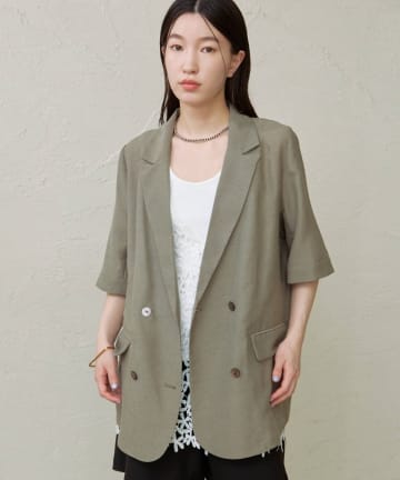 【Omekashi】シアーメッシュ5分袖ジャケット