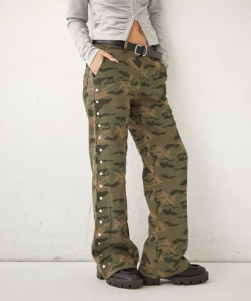 【WHO'S WHO gallery】スウェットミディフレアスタッズパンツ