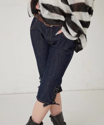 【WHO'S WHO gallery】レースアップデニムカプリパンツ