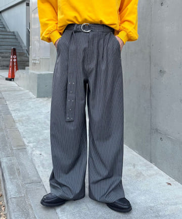 【Discoat】ベルト付き欲張りストレートタックパンツ