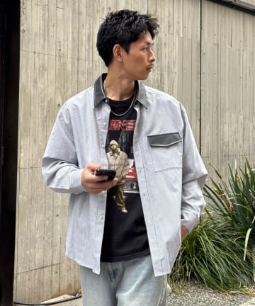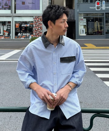 【Ciaopanic】レザー襟切替シャツ