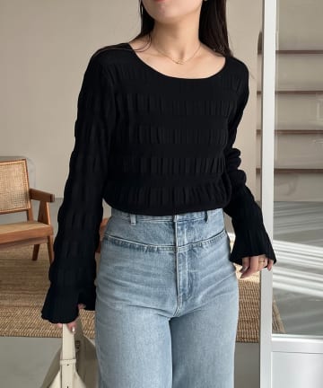 【Loungedress】シャーリングニットブラウス