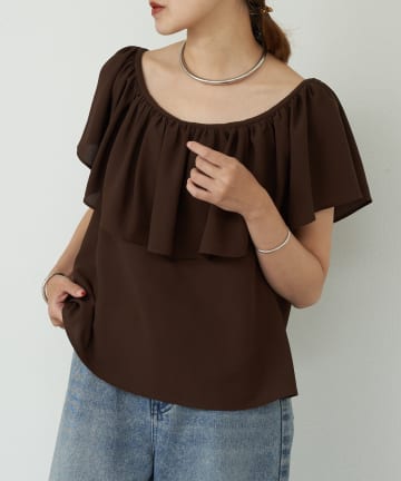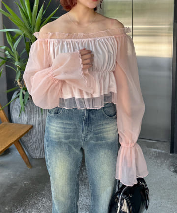 【Loungedress】フリルオフショル2WAYブラウス