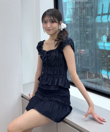 【Discoat】フリルウエストギャザーチュニックブラウス