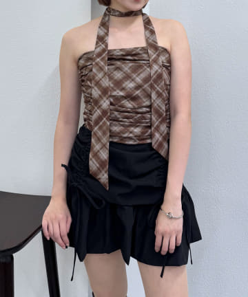 【mline】チェックバンドゥ チョーカーブラウス