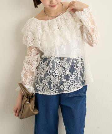 【Chico】ボリュームフリルレースブラウス