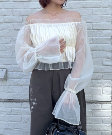 【mline】チュールギャザーブラウス