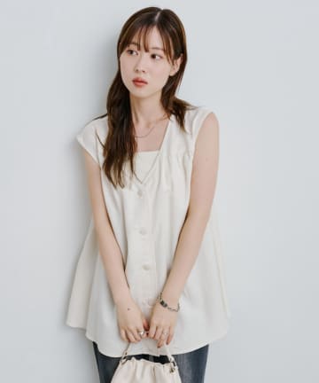 【CIAOPANIC TYPY】ノーカラーリネン混ジレ