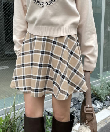 【Chico】ロービングチェック台形ミニスカート
