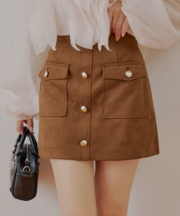 【Chico】フロントボタンスエード台形スカート