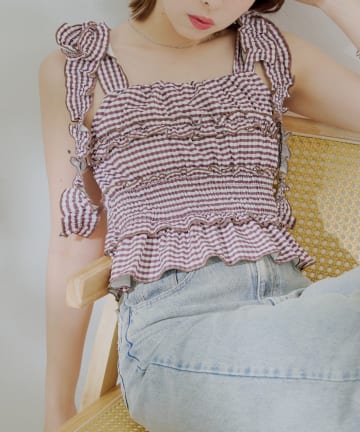 【Chico】ギンガムフリルデザインシャーリングスカート
