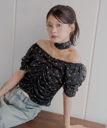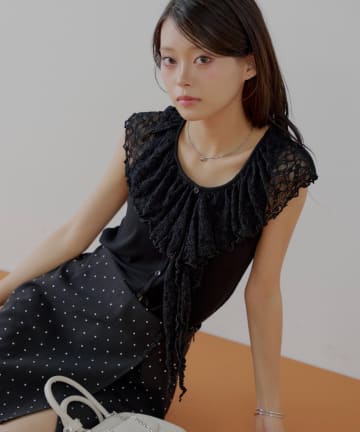 【Chico】ローズチョーカー付ワンショル裾レースT