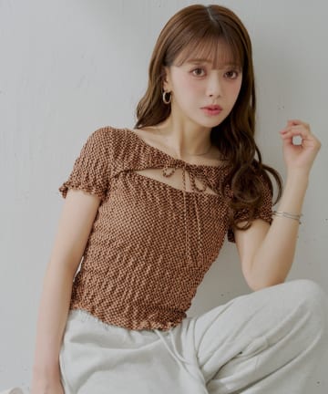 【Chico】ギンガムフロントリボンボレロデザインT