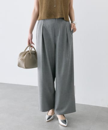 レーヨンナイロンストレッチタックワイドパンツ