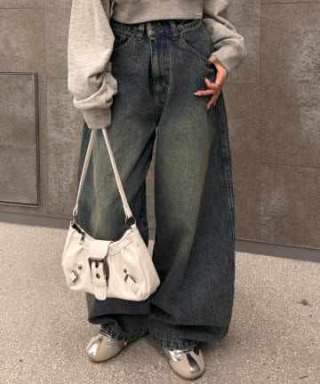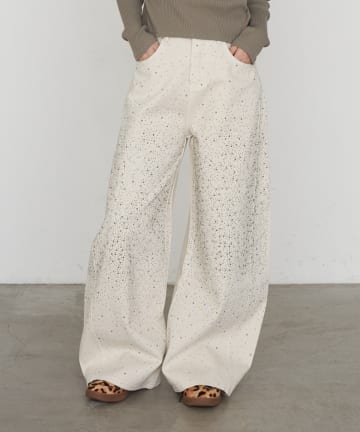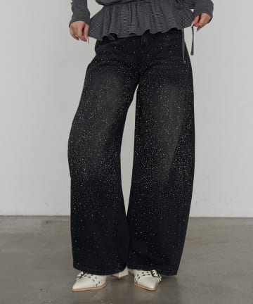 【2サイズ展開 】ラインストーンフレアデニムパンツ