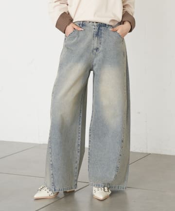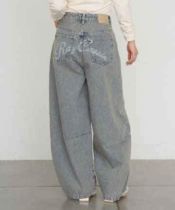 ロゴ刺繍スタッズ細フレアデニムパンツ