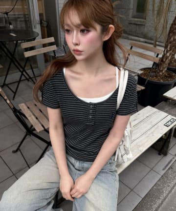 パット付レイヤードヘンリーキャミ