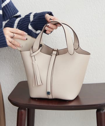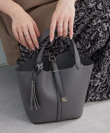 【5色展開】きれいめデザイン、タッセル付ハンドバッグ