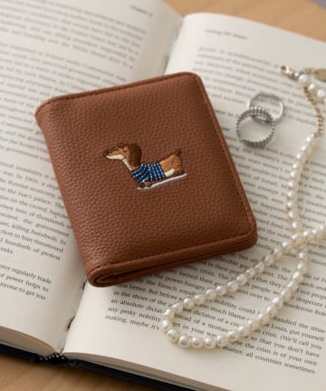 【WEB限定】カードケース付、犬刺繍ウォレット