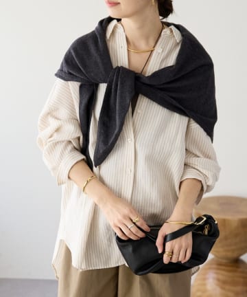 予約【女性らしい抜け感】リネン混ストライプシャツ