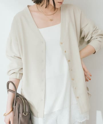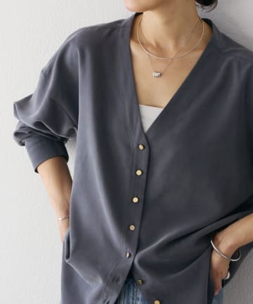 【女性らしい抜け感】メタルボタンノーカラーブラウス