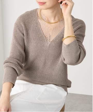 【トレンド感抜群】ペーパーヤーンレース衿ニット